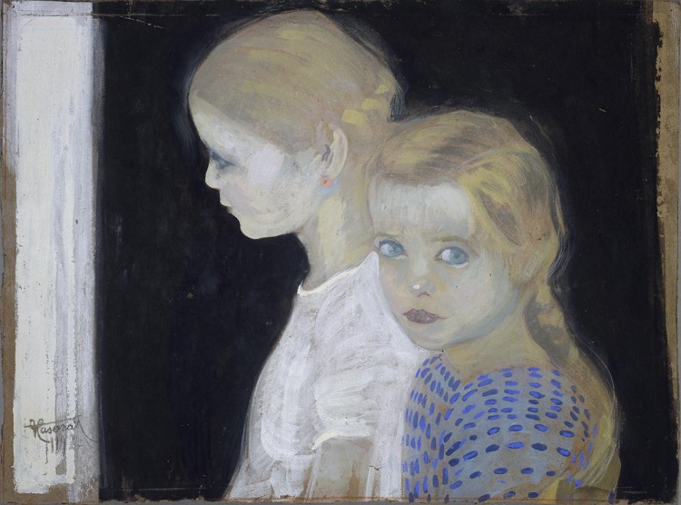 Felice Casorati: Le due bambine, 1912 . Tempera su cartone