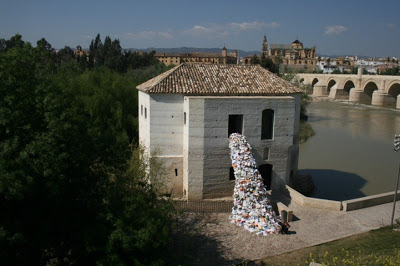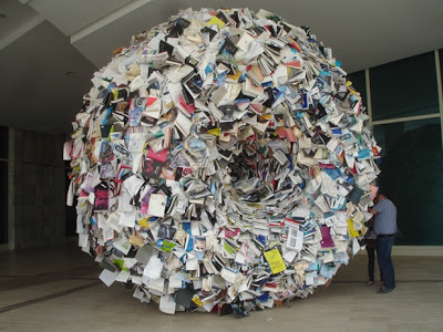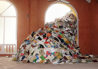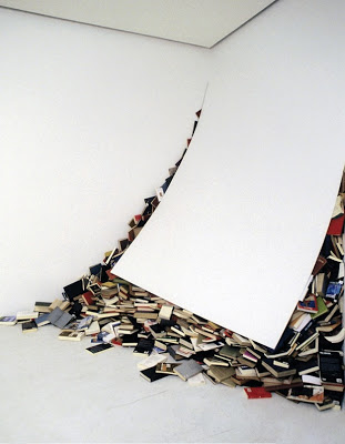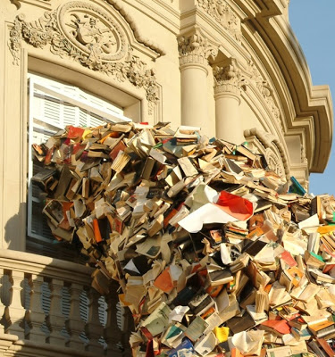 Le sue opere sono grandiose sculture di libri, che sembrano voler invadere il mondo.