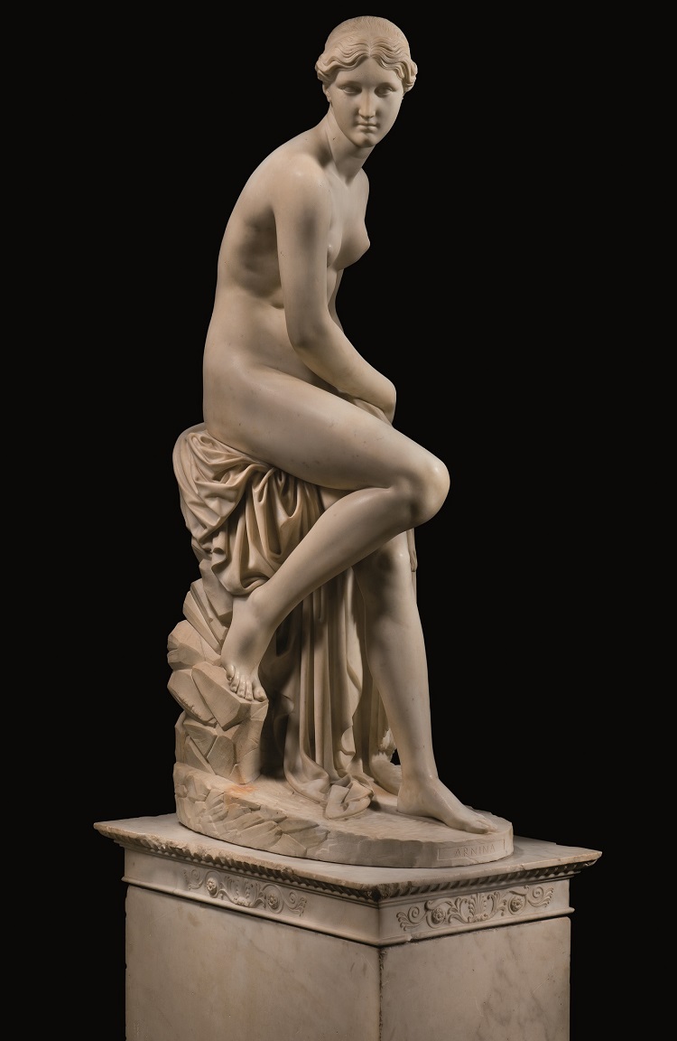 Si tratta dell’Arnina di Lorenzo Bartolini, una statua in marmo raffigurante la Ninfa Arnina, di squisita fattura e di cui vi sono testimonianze della sua riconosciuta bellezza in vari documenti del passato, ma della quale si era perso ogni traccia a lungo e che è stata rinvenuta, poco tempo fa, in una collezione privata inglese dallo studioso John Kenworthy-Browne.