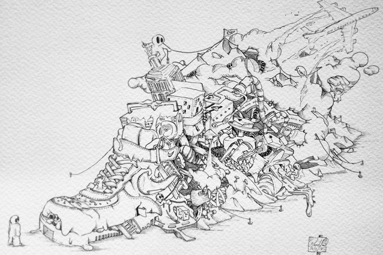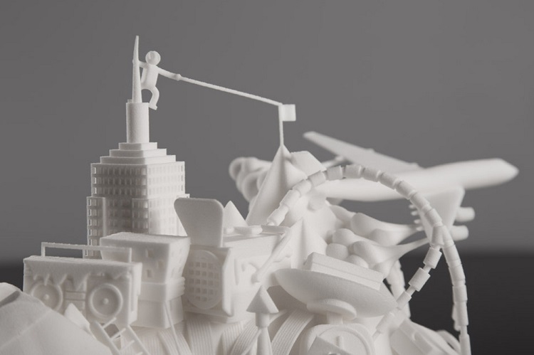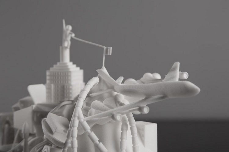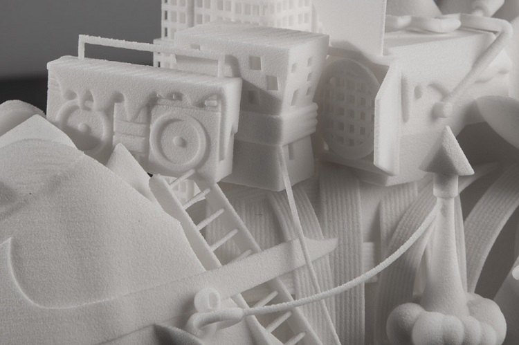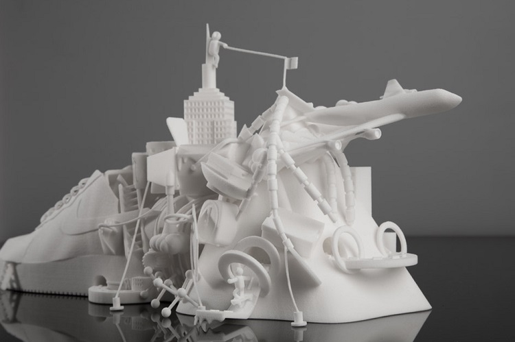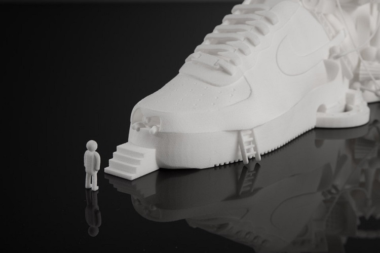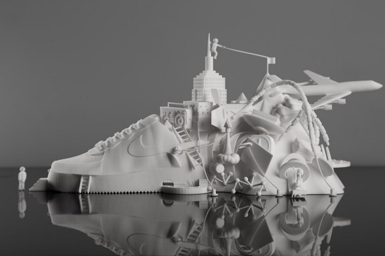 Lo studio di design e 3D Printing Modla ha proposto all’artista Damilola Odusote una collaborazione per realizzare un opera tridimensionale. Prendendo ispirazione dalle iconiche Nike Air Force 1, ha realizzato un’opera che trasforma la scarpa in un intero mondo. L’artista ha prima di tutto completato un’illustrazione 2D, che poi l’head designer e co-founder di Modla ha trasformato usando un software 3D, stampandola nella scultura finale in plastica e nylon.