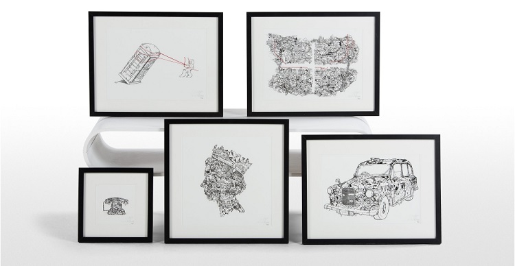 Le opere di Damilola Odusote, caratterizzate da riferimenti politici e influenzate dalla vita londinese sono in vendita on-line sul sito di Made.com .