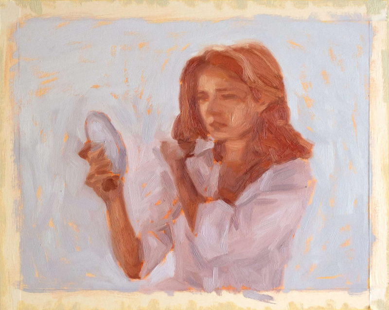 Maurizio Pometti: Oltre L’apparenza – omaggio a Giovanna Brogna Sonnino, olio su cartone vegetale, cm 38×48, 2024