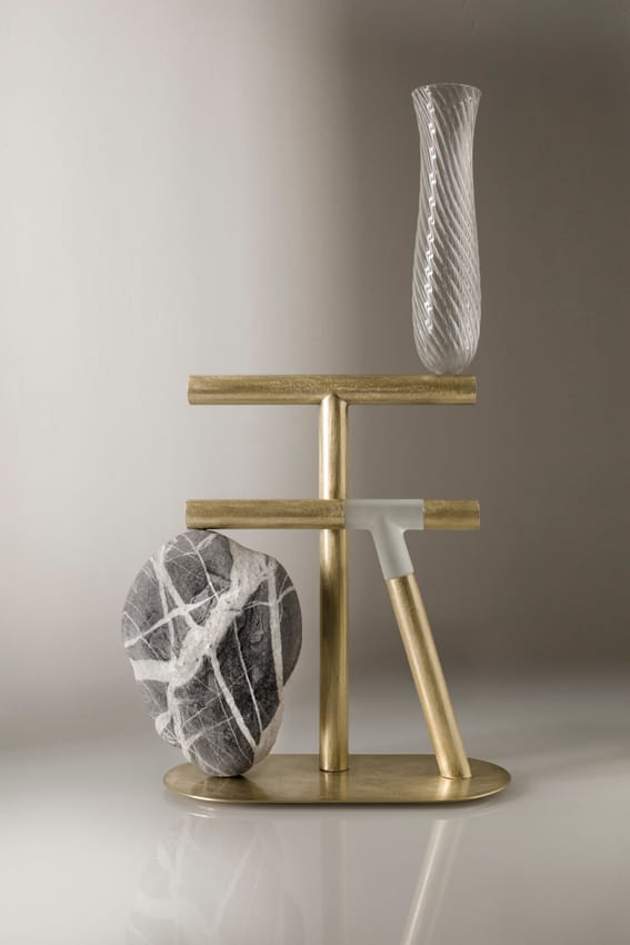 Il designer e architetto premio Compasso d’oro presenta una serie di raffinati oggetti e disegni dedicati al tema delle barricades, piccole architetture che esplorano il concetto degli equilibri instabili, realizzate con pietre, sassi, frammenti di marmi e di legni millenari, silhouette di foglie e di uccelli, cristalli semitrasparenti e impalcature in ottone.
