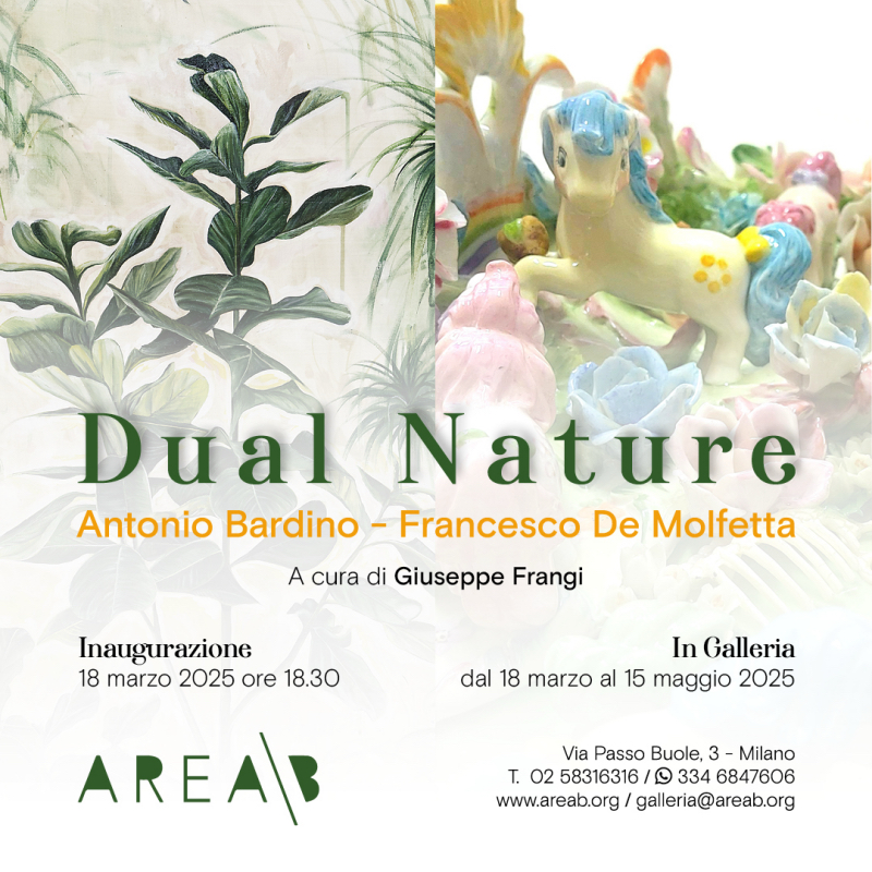 Una natura sfuggente e a tratti ambigua quella che le opere dei due artisti rappresentano con la loro visione e il loro personale approccio: tramite una “pittura scultorea” il primo e una “scultura pittorica” il secondo, il soggetto naturale viene trattato in maniera volutamente artificiosa. Due linguaggi che si relazionano senza cedere al proprio specifico, presentandosi come identità chiare e precise disposte a mutare rivelando la loro “doppia natura”.