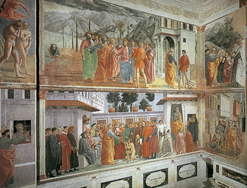La collaborazione tra Masaccio e Masolino è particolarmente interessante poiché i due artisti lavorarono con una straordinaria unitarietà prospettica.