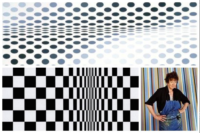 Esponente di spicco della Op Art, un movimento artistico artistico nato negli anni sessanta che gioca con le illusioni ottiche utilizzando il colore e le forme astratte, la Riley prende in esame i fenomeni ottici attraverso la giustapposizione di linee o cerchi colorati.