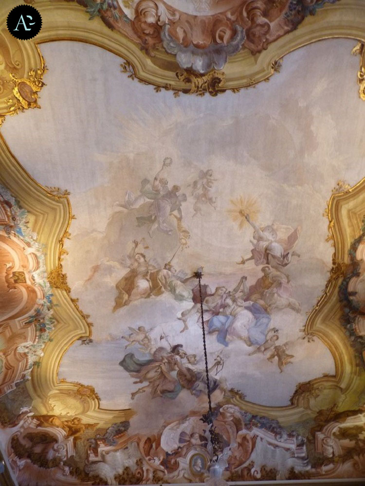 Di questo gruppo di affreschi fa parte anche la più complessa “La Nobiltà e la Virtù conducono il Merito verso il tempio della Gloria immortale”