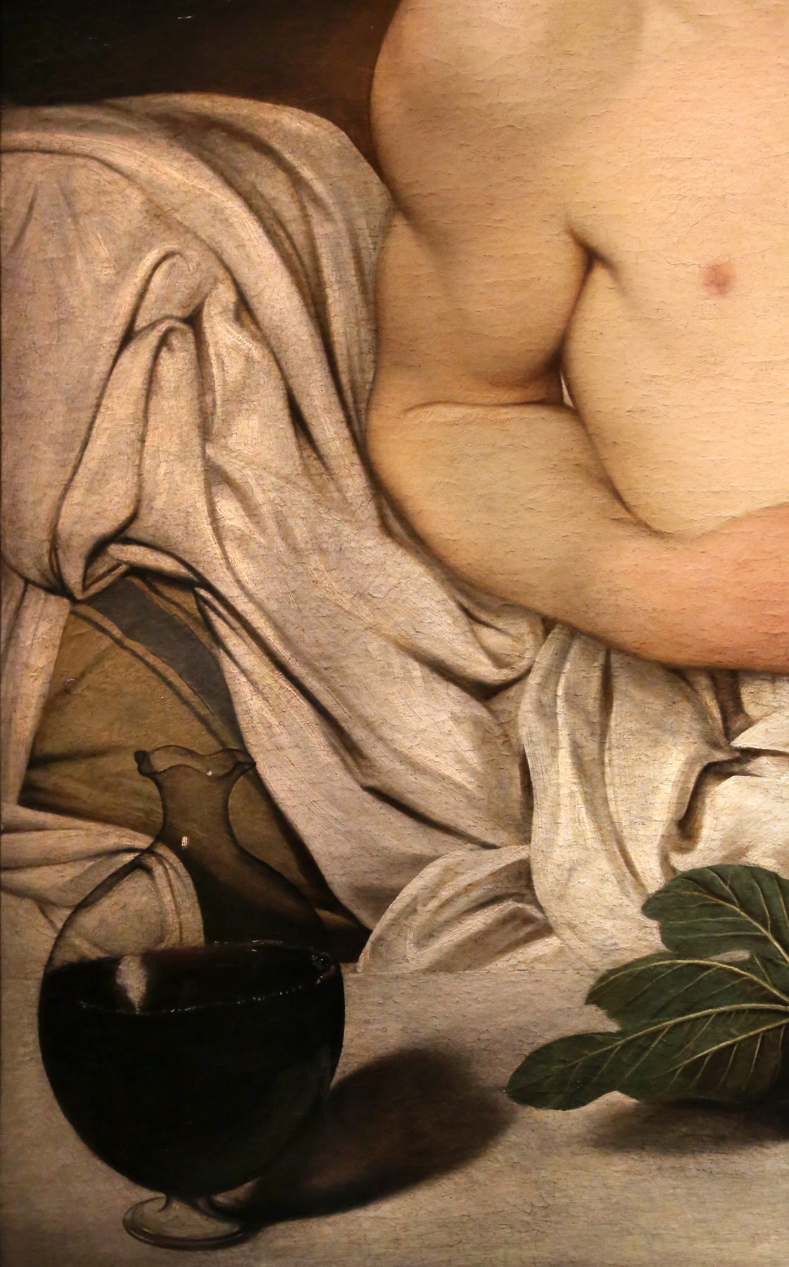 Il suo Bacco forse è un amico di bevute ritratto in un momento in cui è un po’ stordito dai fumi dell’alcol. Mi piace pensare che Caravaggio gli abbia chiesto di travestirsi, di tenere in mano un bicchiere di vino e di posare per lui.