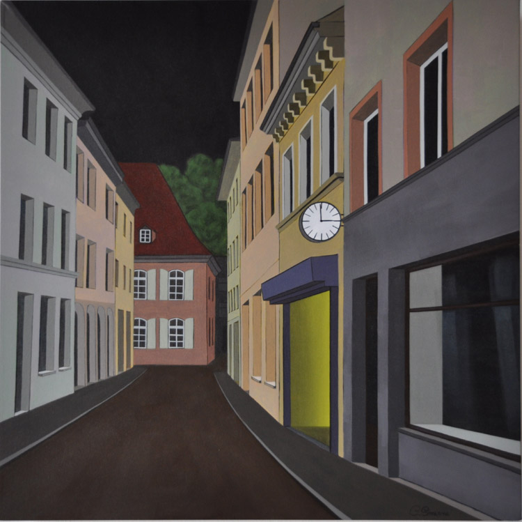 Il titolo della mostra è “Città Aperta” ed espone le ultime opere di quest’artista, che mette in scena spettacoli surreali, scorci urbani che sembrano scenografie e che sono il simbolo del disagio esistenziale, lo specchio delle nostre ansie.