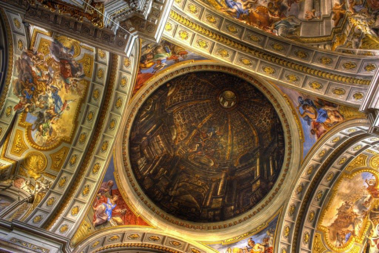 Si tratta della Chiesa di Sant’Ignazio in Campo Marzio a Roma dove si possono ammirare gli affreschi di Andrea Pozzo, dove l’illusione prospettica, figurativa e architettonica tocca il suo apice e lasciano a senza fiato.