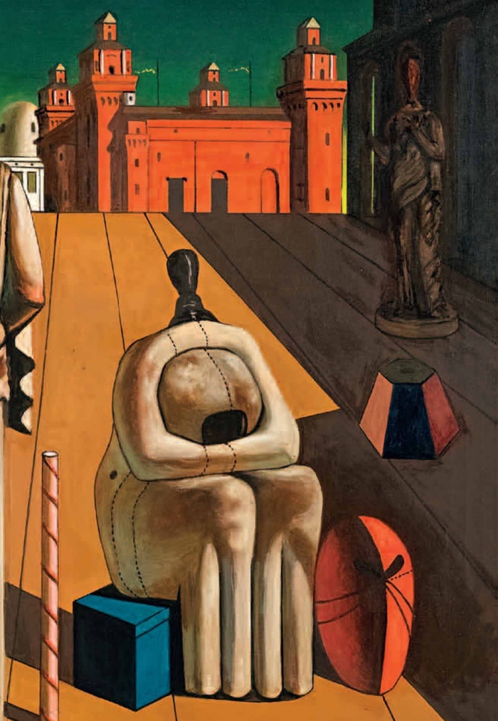 - l’omissione completa della figura umana, spesso sostituita da statue, manichini, esseri mitologici e ombre prolungate;