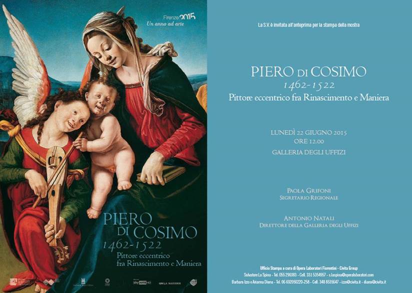 Piero di Cosimo – Una mostra dedicata a Piero di Cosimo a Firenze. Un pittore del Rinascimento originale, fantasioso, straordinario narratore di favole, ma la cui notorietà al di fuori del ristretto mondo degli storici d’arte e dei collezionisti, non ha mai raggiunto quella di maestri suoi contemporanei.