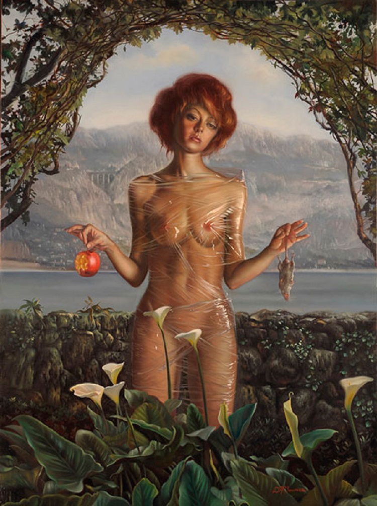 New Trend Magazine is an endless source of discoveries and read the posts published is always exciting for me. Today I want to share with you the images of the works of David Bowers, who is inspired by Flemish painters Hieronymus Bosch and to achieve the fantastic and surreal masterpieces. Here’s what he says about this artist Dorothy Pellegrini. “His favorite subjects are women from the aesthetic structure divided and heterogeneous, dressed with camisoles, robes and tunics of previous eras, or bare or wrapped in nylon plastic. Esornative mixing shades of Renaissance art, surrealist and symbolist painting her visually reveals the archetype of the contemporary woman, surrounded by emblems and products imposed by the dictatorship of consumerism, without sacrificing the exhibition unnatural and icy of their physicality. “ – (English translation powered by Google).