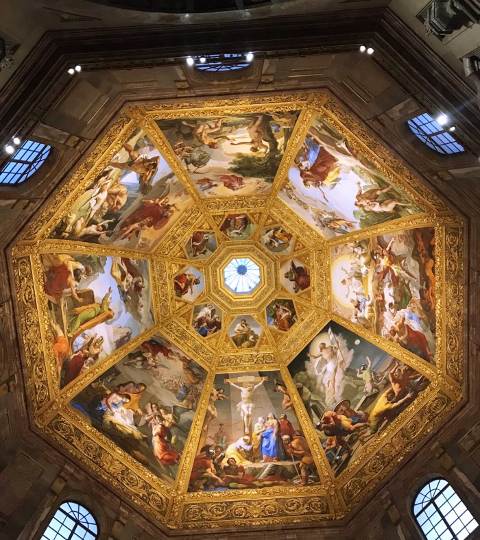 As soon as you enter you are immediately in the Crypt, planned by Buontalenti, with four recesses housing the remains of some less famous members of the Medici family.