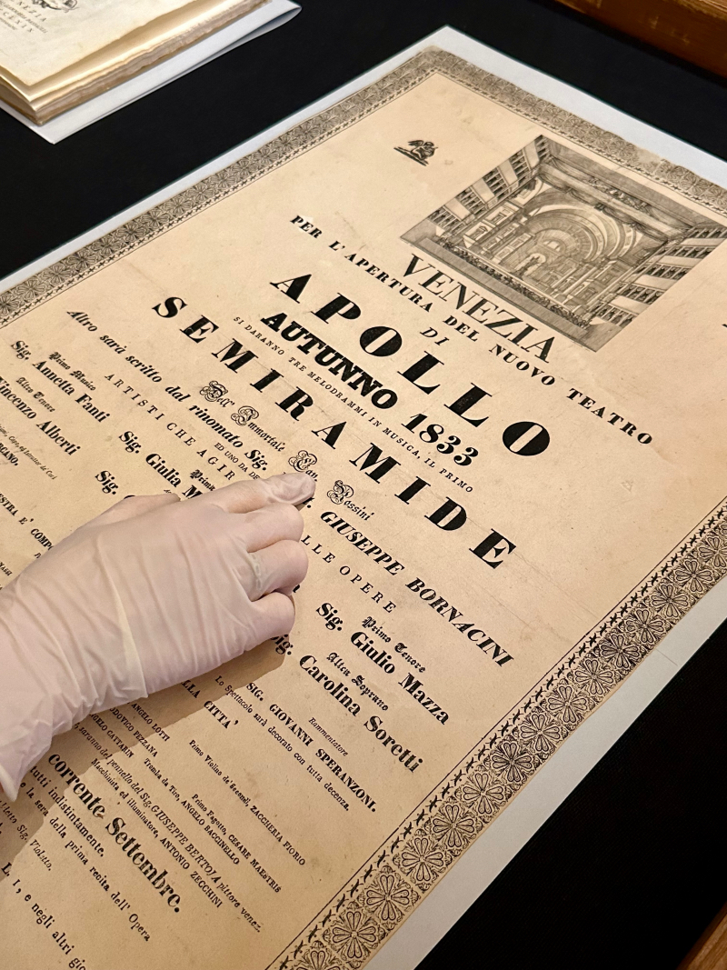 The documents on display highlight the crucial role of the Vendramin family in the history of Venetian theatres.