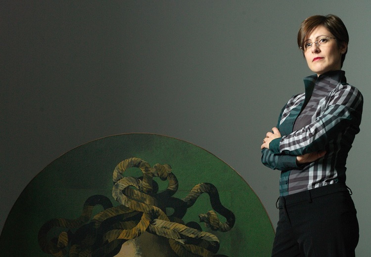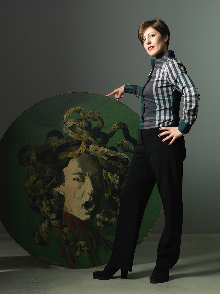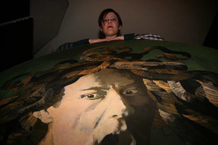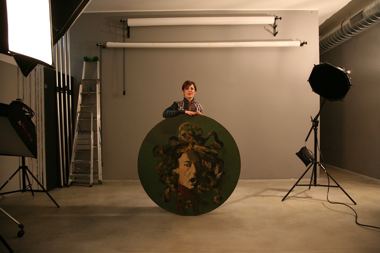 Elena decide di fotografarmi accanto ad una riproduzione della Medusa di Caravaggio e inizia lo shooting!