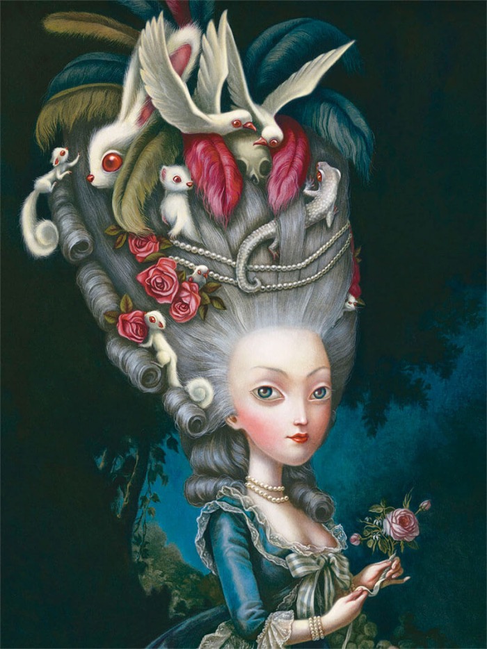 Nelle opere di Benjamin Lacombe le fonti di ispirazione sembrano essere Caravaggio e Murakami e, in effetti, in una recente intervista, l’artista ha dichiarato che questi due artisti sono un’ossessione anche se  il lavoro grafico di Walt Disney ha plasmato il suo immaginario in modo determinante.