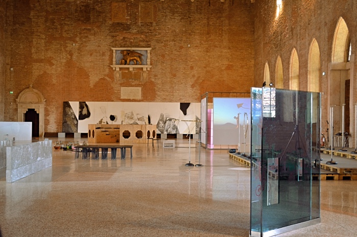 In totale sono 28 le opere installate in uno spazio privo di vincoli interpretativi, invaso dalla luce naturale che entra dalle ampie aperture palladiane sui tre lati dell’edificio.