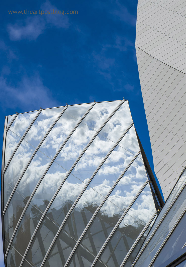 La Fondazione Louis Vuitton si presenta maestosa, simile ad una nuvola trasparente o ad un enorme veliero, sembra che sia giunto da un altro pianeta e sia atterrato nei giardini di Bois de Boulogne per sorprenderci.