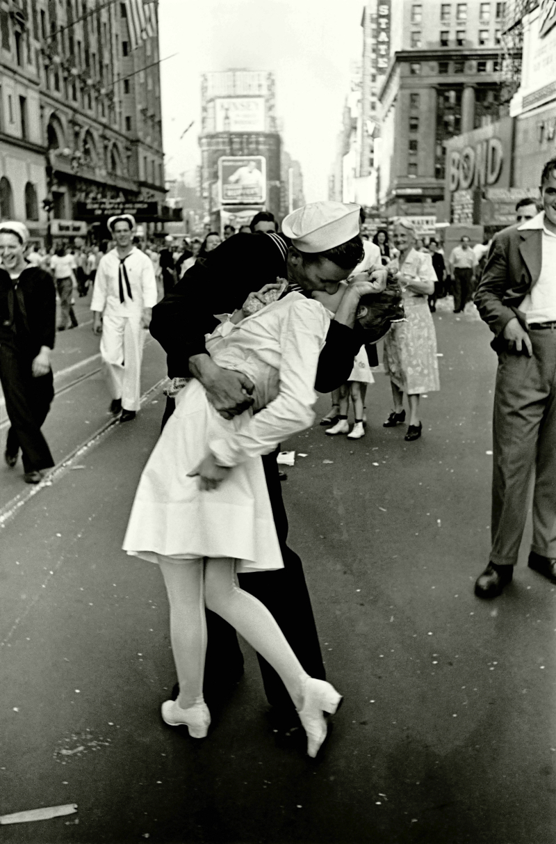 Sailor kissing nurse during the celebration of Victory over Japan Day at Time Square, New York City, New York, 15th August 1945