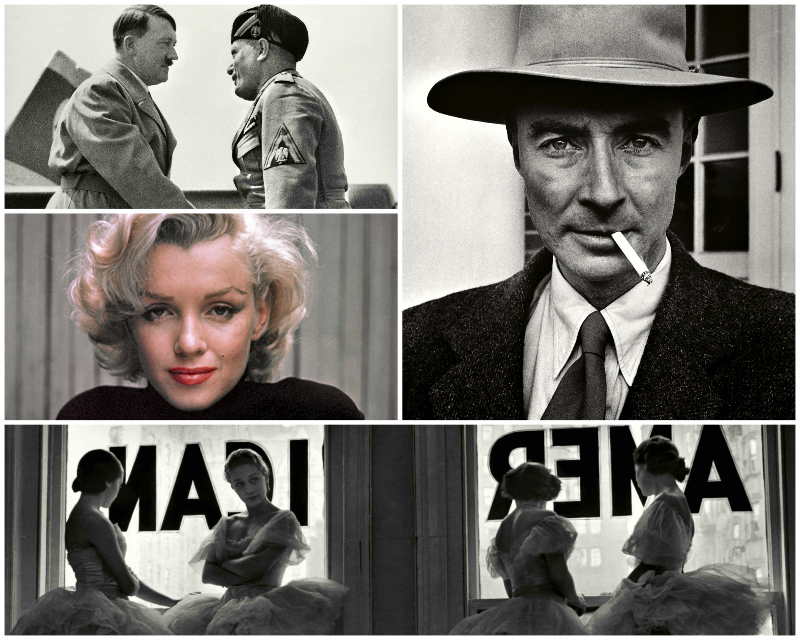 Si parte dalla Germania degli anni Trenta, con immagini potenti e scomode (c’è anche il famigerato ritratto di Joseph Goebbels, quello che ti guarda con un odio che ti fa venire i brividi). E poi si vola negli Stati Uniti del boom economico, in Giappone dopo Hiroshima, nell’Italia del dopoguerra dove anche i cartelloni pubblicitari diventano simboli del cambiamento. Non mancano i ritratti delle icone del secolo: Sophia Loren, Marilyn Monroe, Marlene Dietrich, Albert Einstein, persino J. Robert Oppenheimer, sì proprio quello della famigerata bomba atomica.
