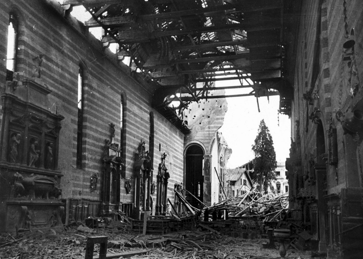 L’11 marzo del 1944 la Chiesa subì gravi danni a causa di un bombardamento durante la seconda Guerra Mondiale.