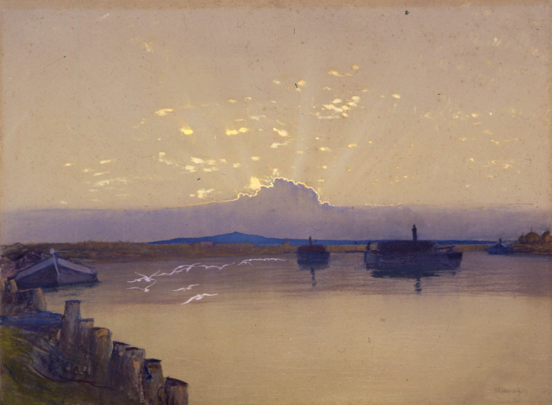 Giulio Aristide Sartorio: Alba sul Tevere, 1914, pastelli a colori, mm 564 × 760