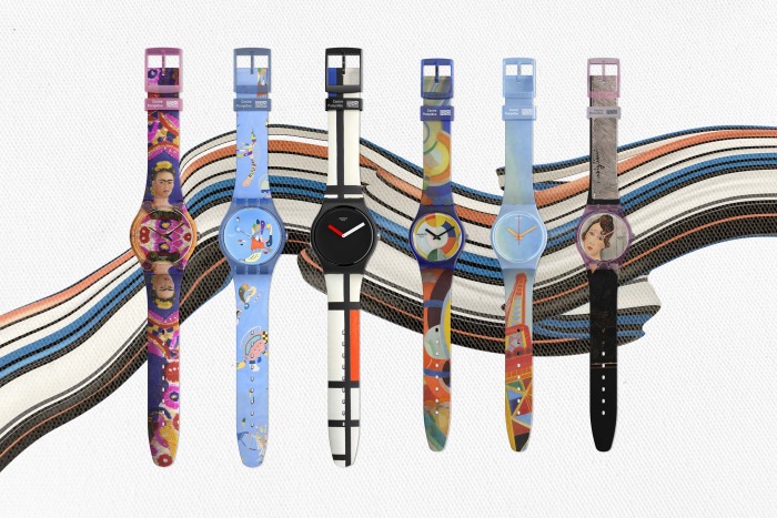 Swatch rende omaggio alle opere di Frida Kahlo, Amedeo Modigliani, Robert Delaunay, Vassily Kandinsky e Piet Mondrian.