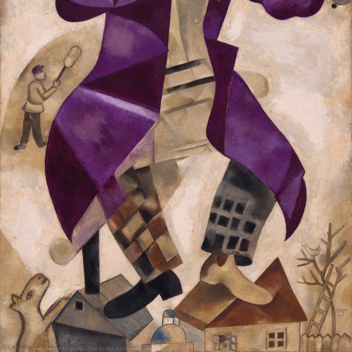 Chagall in questo dipinto rappresenta un violinista, che per sua natura ha una vita instabile e immersa nel sogno. Un artista che ha come patria il mondo, esattamente come il popolo ebraico, e che con la musica porta consolazione felicità agli uomini.