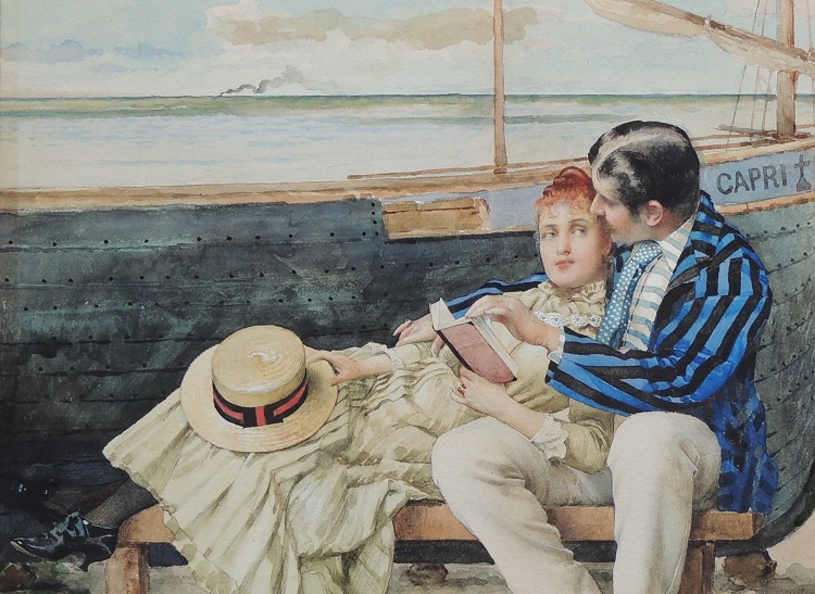Vittorio Corcos “Lune de miel” (1885), acquerello su cartone, 345 x 455 mm.