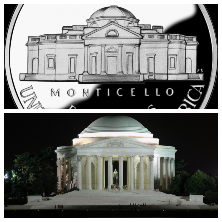 Ecco perché quando abbiamo tra le mani una moneta da 5 cent americana oppure vediamo la biblioteca dell’Università della Virginia e il Jefferson Memorial osserviamo edifici che a noi sembrano familiari!