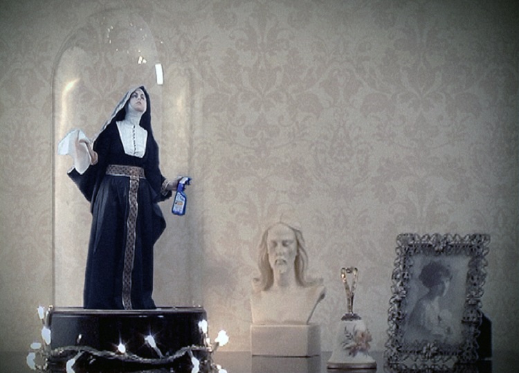 L’ironia dissacrante investe il prototipo della religiosità popolare come per la santa suora nella campana di vetro che fa le pulizie nel video di Paula Sunday & Alfredo Maddaluno, nel SuperJesus che spicca il volo come un razzo di Max Papeschi o nel Cristo grassoccio e sorridente di Norbert Francis Attard. Ma sono molti gli artisti presenti alla mostra “Il sacro svelato, iconografia contemporanea” a cura di Antonio Manfredi, dal 9 maggio, alle ore 19.00, al 9 luglio 2014: Tamer Abdelaaty, Paula Sunday & Alfredo Maddaluno, Norbert Francis Attard, Ashis Gosh, Pietro Lista, Sound Barrier, Carlo Hermann, Gloria Pastore, Laura Niola, Max Papeschi, Piergiuseppe Pesce, Di Guida & Vargas, Giorgio Scotti, Yasser Gaessa, Martin Reiter, Ivan Piano, Mario La Porta, Roberta Basile, Gerardo Di Fiore.————————
