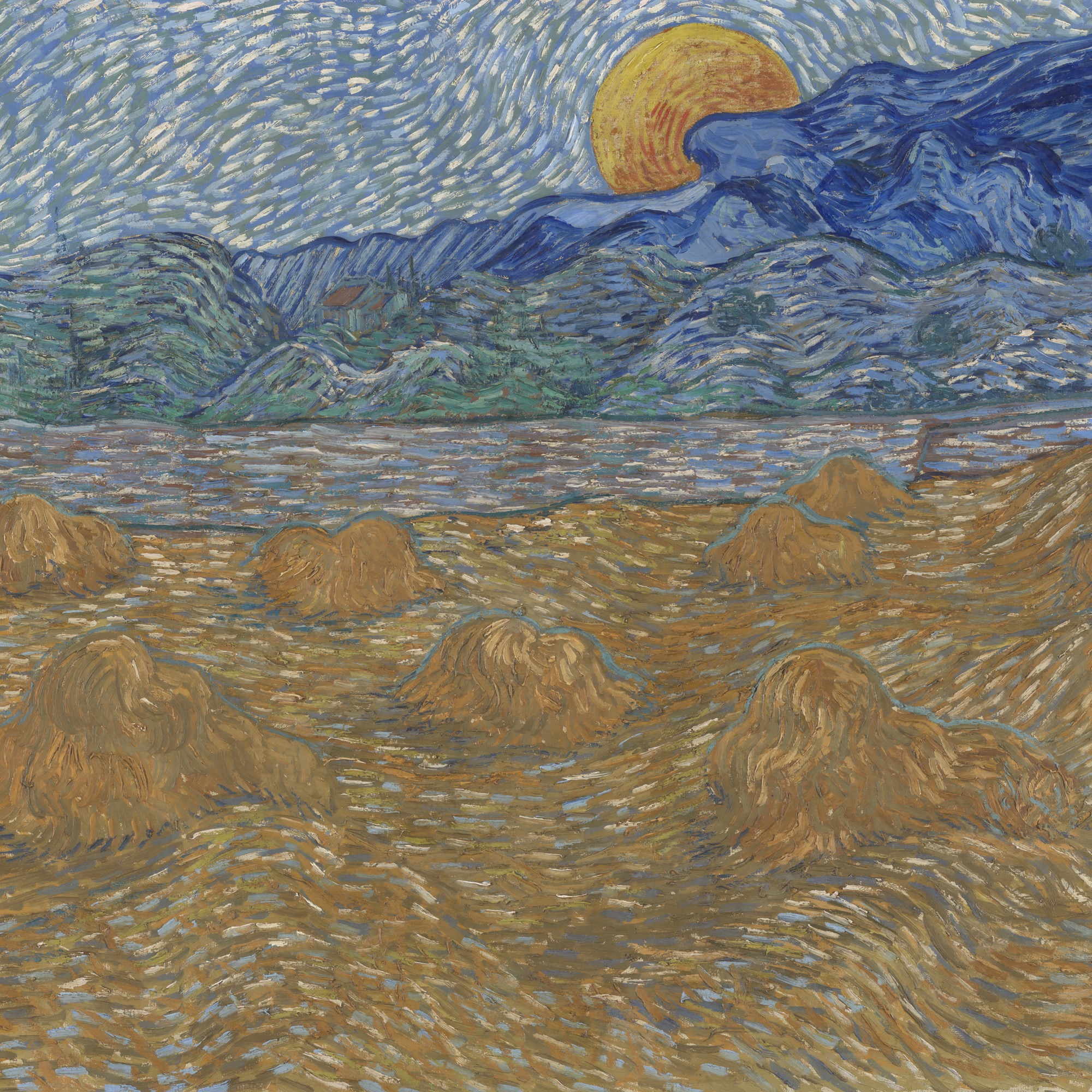 Paesaggio con covoni e luna nascente, che fa parte della collezione di opere del Kröller-Müller Museum di Otterlo, è la prova che Vincent non ha mai dipinto in preda alle sue crisi psicotiche, ma ha sfruttato i suoi rari momenti di lucidità per comporre capolavori di chiara ispirazione impressionista, grazie a pennellate sofferte e che segnano la strada verso l’Espressionismo.