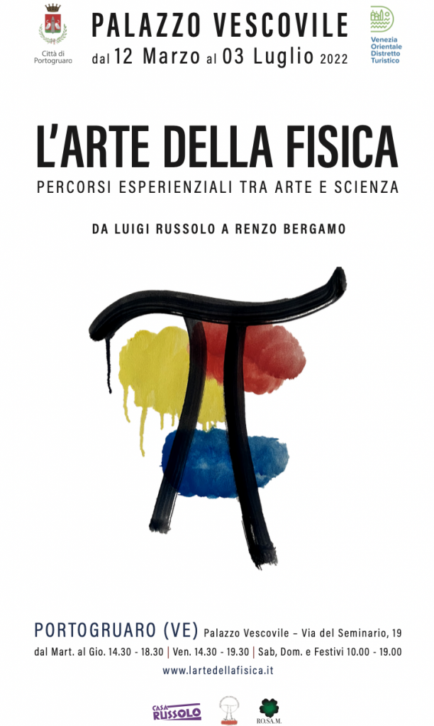 Dal 12 marzo e fino al 3 luglio 2022, il Palazzo Vescovile di Portogruaro, con la mostra “L’Arte della Fisica – da Luigi Russolo a Renzo Bergamo”, propone un’esperienza davvero unica, proponendo in una formula assolutamente originale, attraverso percorsi immersivi e pluri-sensoriali con audio e video, la lettura della grande opera monografica di Bergamo di cui sono presenti in mostra più di 90 opere.
