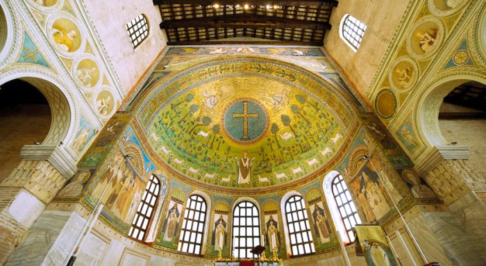 Fu costruita nel VI secolo nel luogo dove probabilmente era sepolto il vescovo Apollinare e all’interno si trova la più vasta superficie musiva che sia giunta a noi dall’antichità.