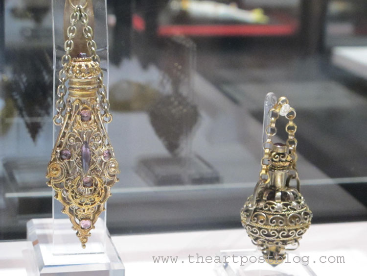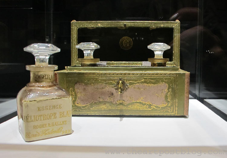 Sono raccolti flaconi di profumi che nel 700 erano simbolo di seduzione e parte significativa del linguaggio amoroso.