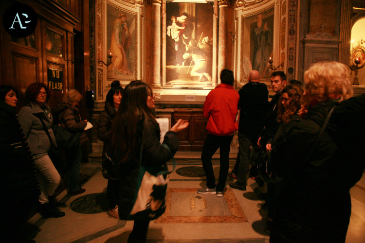 Siamo partiti dalla Chiesa di San Luigi dei Francesci e abbiamo attraversato le strade, i vicoli e le vie dove Caravaggio ha vissuto, amato, litigato e creato le sue opere.