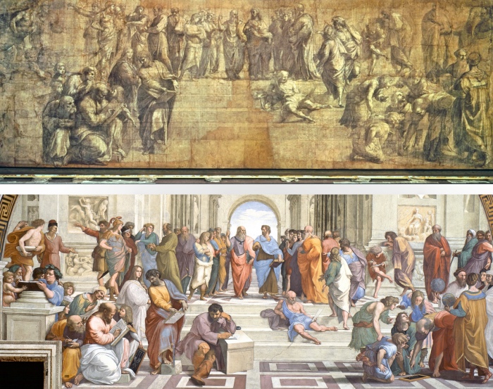 - La Biblioteca Ambrosiana ha in calendario l’apertura al pubblico della sala espositiva del cartone preparatorio della Scuola di Atene (“La Filosofia”) di Raffaello Sanzio per presentare l’opera completamente restaurata.