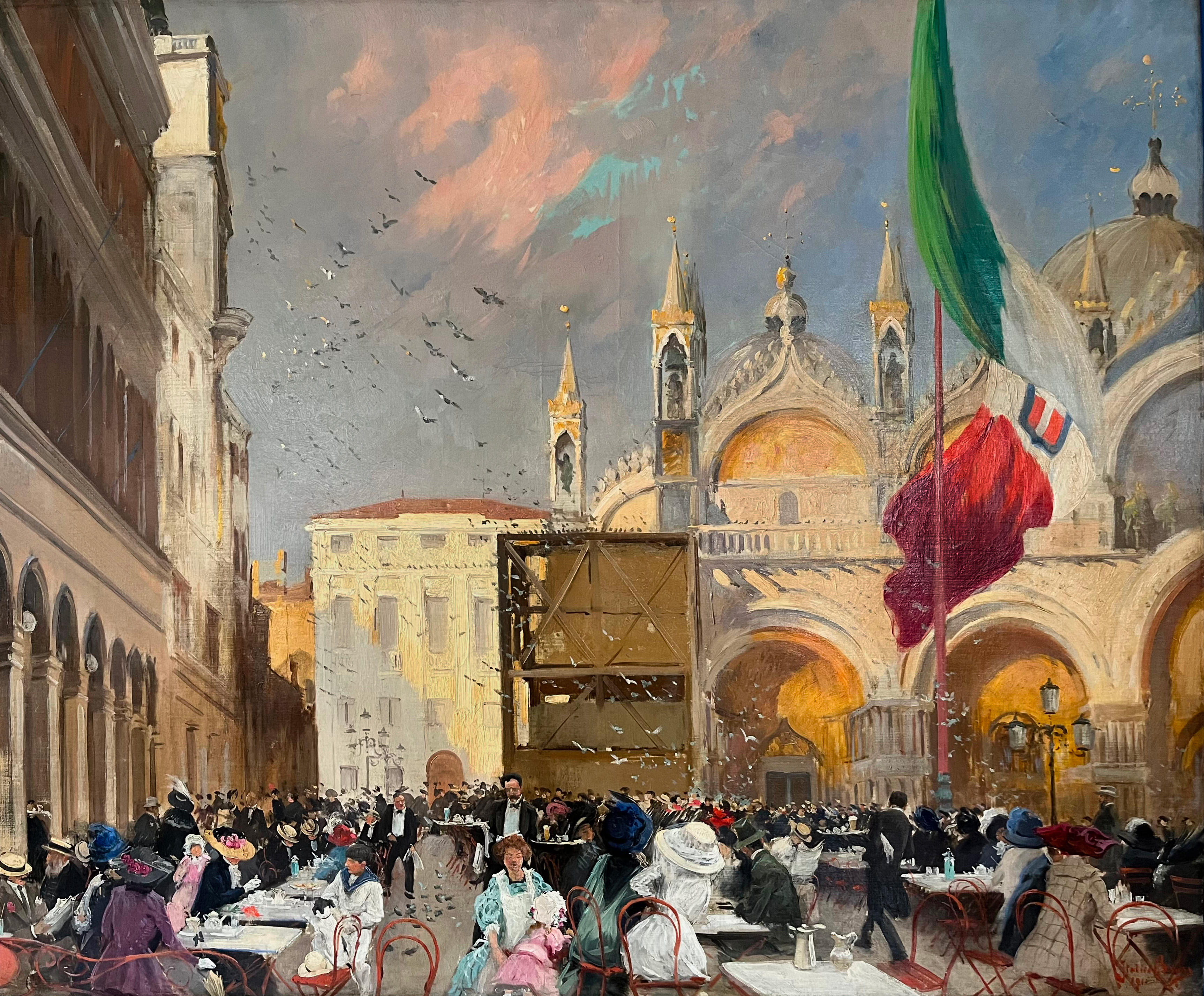 Italico Brass, Caffè Lavena in Piazza San Marco, 1911-1912, olio su tela, 97x121cm. Collezione privata. Courtesy lineadacqua