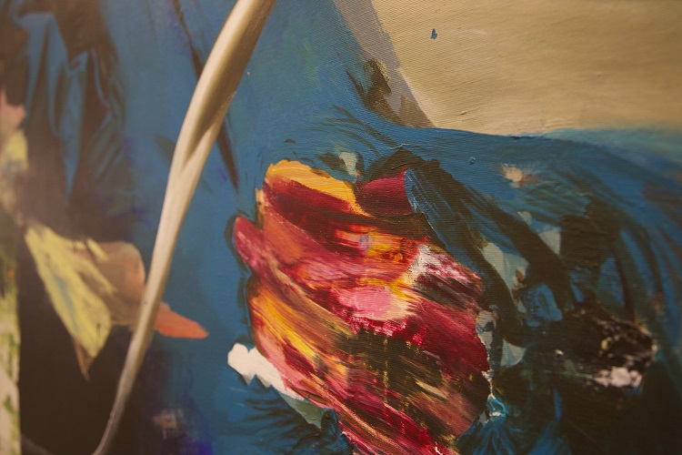 Ho visto le opere di Giuseppe Gonella per la prima volta da vivo ad Art Verona e sono rimasta veramente impressionata dalle grandi dimensioni delle tele che dipinge, ma anche dall’energia delle sue pennellate. Tutto lo spazio dipinto è un ribollire di emozioni, che prendono il sopravvento su uno sfondo che appena suggerito.