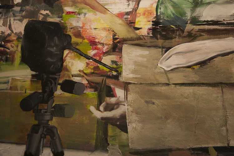 Avevo incrociato casualmente le sue opere girovagando su Facebook, in una di quelle pigre domeniche in cui si cerca un po’ di ispirazione e magari qualche cosa che stupisca. Quando ad un certo punto mi sono imbattuta in un post che avvertiva dell’imminente inaugurazione di una sua mostra e le sue opere mi hanno subito colpita, con le sue rappresentazioni in cui si intuisce il senso, ma che sembra “spezzato” come se fosse in un sogno (o un incubo) che difficilmente si può ricordare.