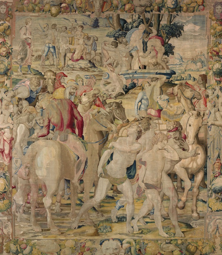 Tessuti alla metà del XVI secolo nella manifattura granducale, tra le prime istituite in Italia, furono realizzati dai maestri arazzieri fiamminghi Jan Rost e Nicolas Karcher sui cartoni forniti da Agnolo Bronzino, Jacopo Pontormo e Francesco Salviati.