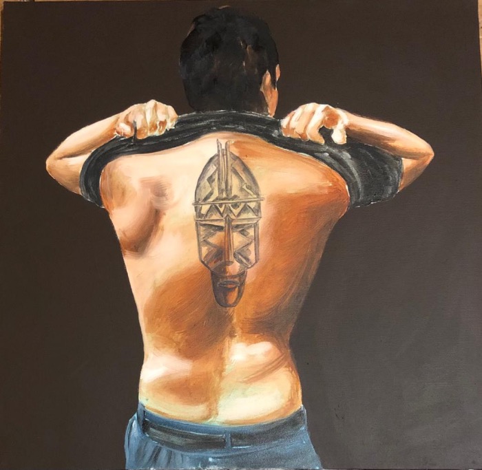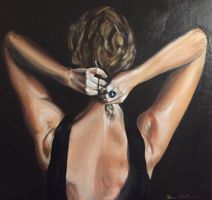 I suoi sono “Retroritratti” ovvero ritratti di persone colte di spalle perchè la schiena, è la parte di noi che non conosciamo e non vediamo mai. Raffigurarla aiuta a scoprire il proprio lato oscuro, il non vissuto.