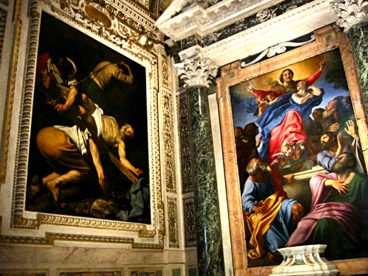 Infine, la Cappella Cerasi è forse la più famosa perché conserva due capolavori di Caravaggio: La Conversione di San Paolo e la Crocifissione di San Pietro.