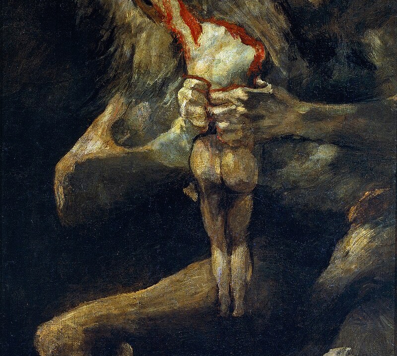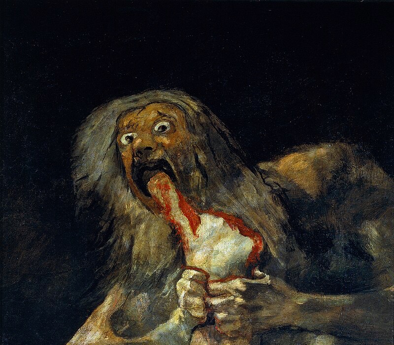 Il dipinto ritrae il dio Saturno in un atto di indescrivibile orrore: sta consumando uno dei suoi figli appena nati.