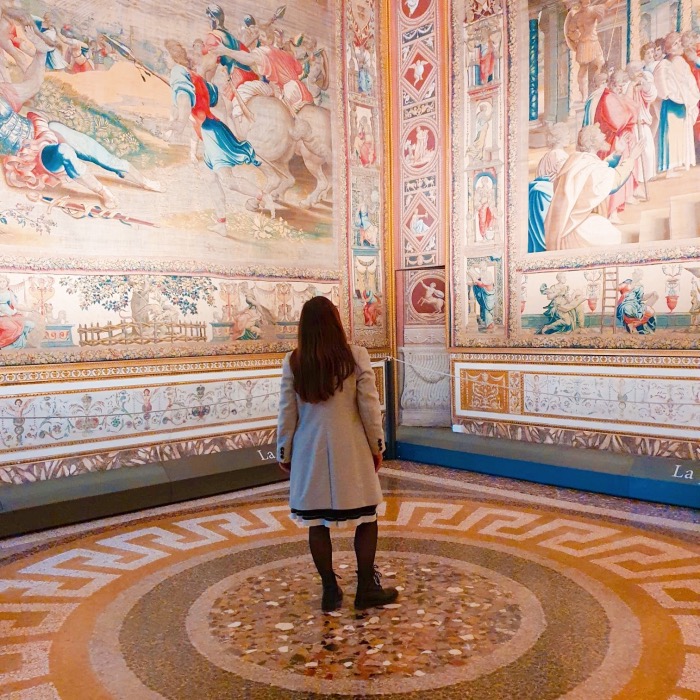 Sono quattro gli ambienti che ospitano nove preziosi arazzi del Cinquecento e che ripropongono le storie tratte degli Atti degli Apostoli che Raffaello ha realizzato per la Cappella Sistina.