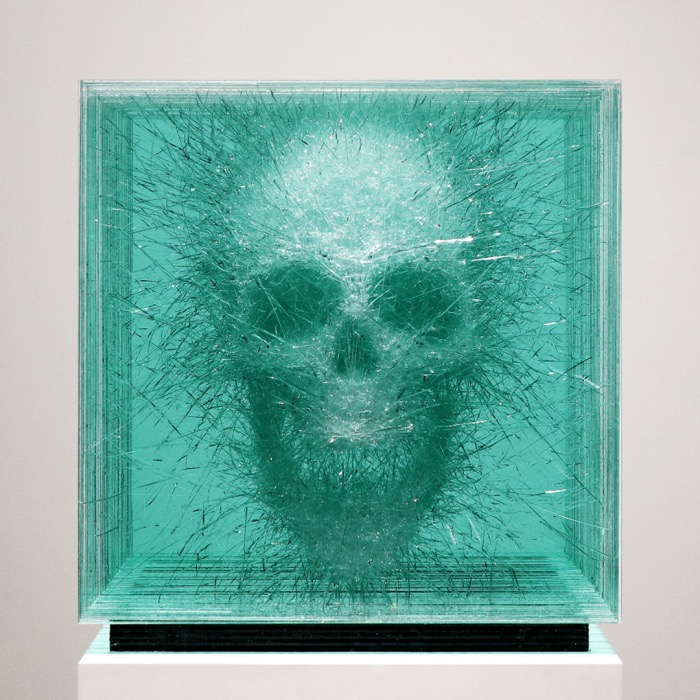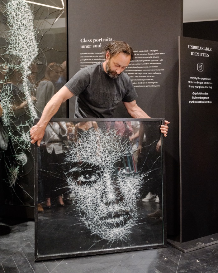 Si tratta di opere in cui il vetro è messo alla prova per liberare tutto il suo potenziale e trasformare la superficie liscia della lastra di vetro in un’intricata rete di crepe e fratture che ricreano il volto umano.