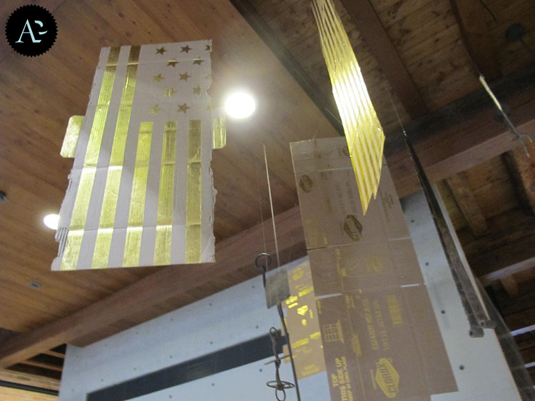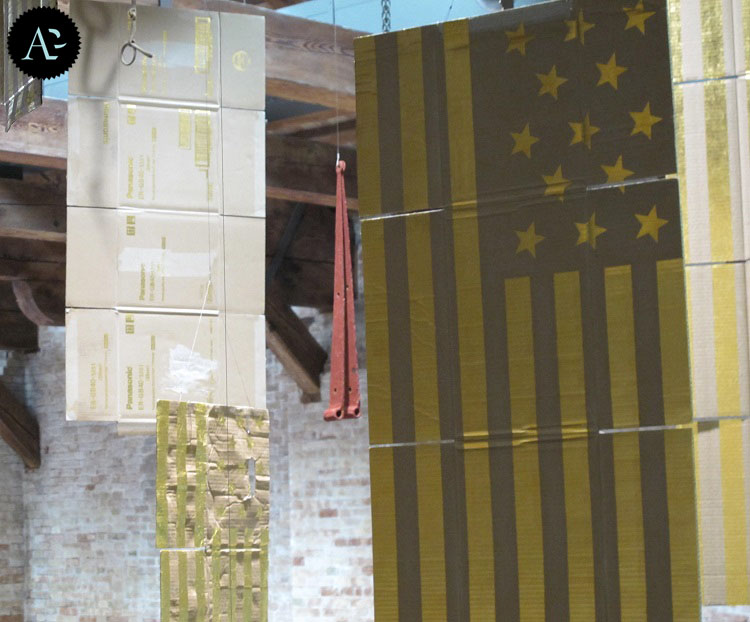 Non manca, poi, l’opera che io preferisco tra quelle di Danh Vo fin’ora realizzate, ovvero “Untitled”. Le 27 scatole di cartone americane in cui è rappresentato lo schema originale della bandiera americana a stelle (una per ogni colonia fondatrice) e in cui ciascuna testimonia i cambiamenti subiti dalla bandiera nei decenni con l’aggiunta di una stella per ogni nuovo stato.