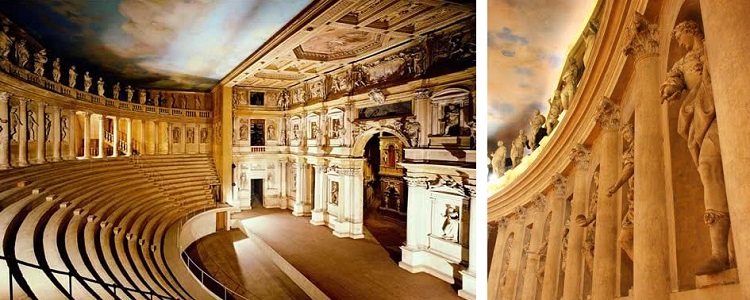 Il risultato è spettacolare, nonostante le dimensioni ridotte dello spazio e le nicchie, le statue classiche, i tredici gradoni e l’intatta scenografia che lo Scamozzi realizzò per lo spettacolo inaugurale ci consegnano un teatro straordinario.