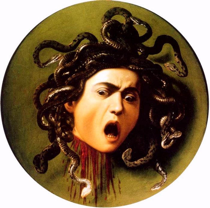 Caravaggio, Medusa (1598) dettaglio – Uffizi, Firenze.